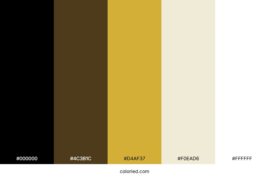 | #D4AF37 | 212, 175, 55 | 46, 65%, 52% | 0%, 17%, 74%, 17% | oklch(0.767 0.139 91) | |