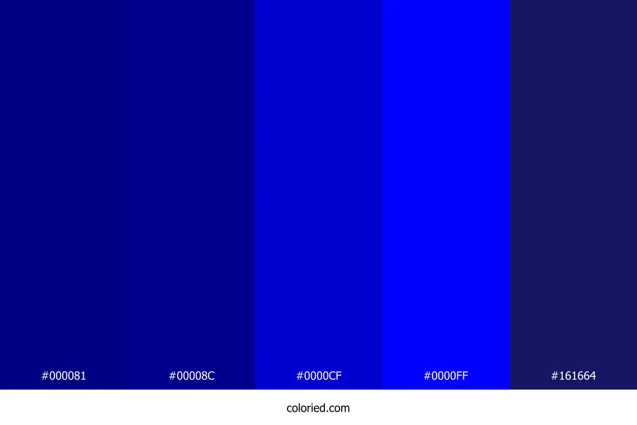 | #0000CF | 0, 0, 207 | 240, 100%, 41% | 100%, 100%, 0%, 19% | oklch(0.386 0.268 264) | |