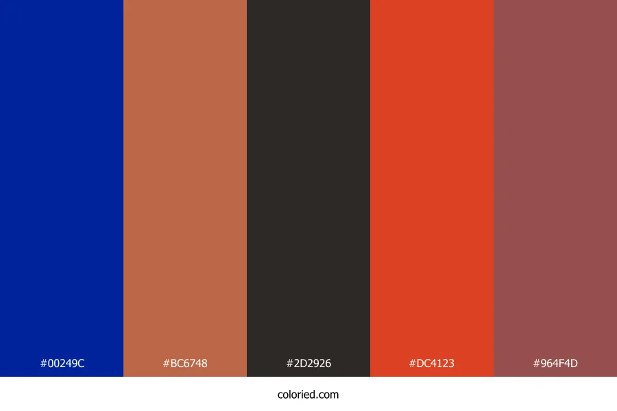 ![]() | #00249C | 0, 36, 156 | 226, 100%, 31% | 100%, 77%, 0%, 39% | oklch(0.348 0.194 264) |