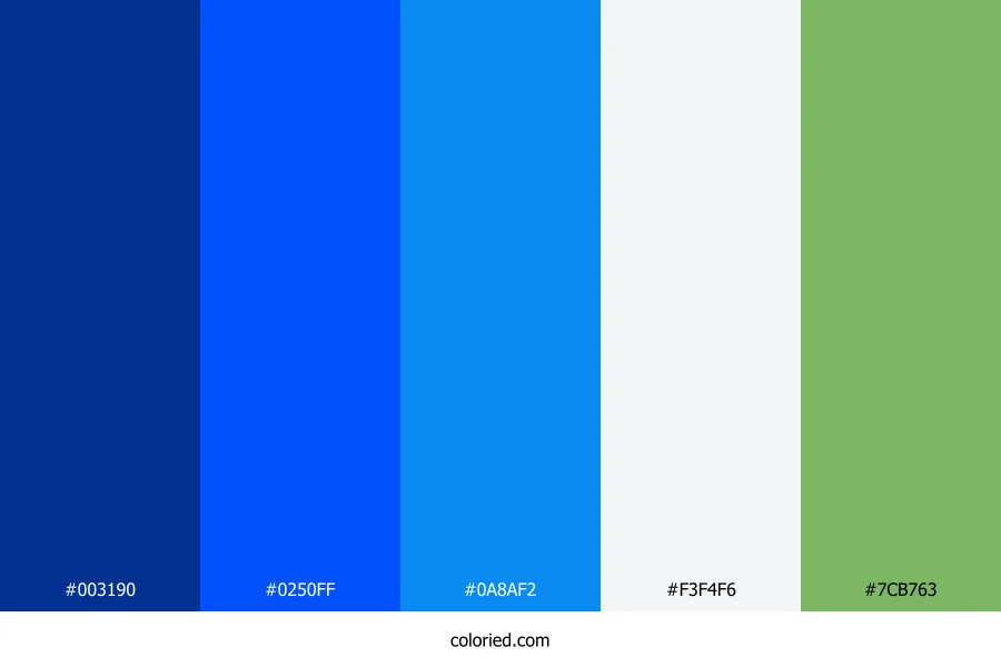 ![]() | #003190 | 0, 49, 144 | 220, 100%, 28% | 100%, 66%, 0%, 44% | oklch(0.358 0.164 262) |