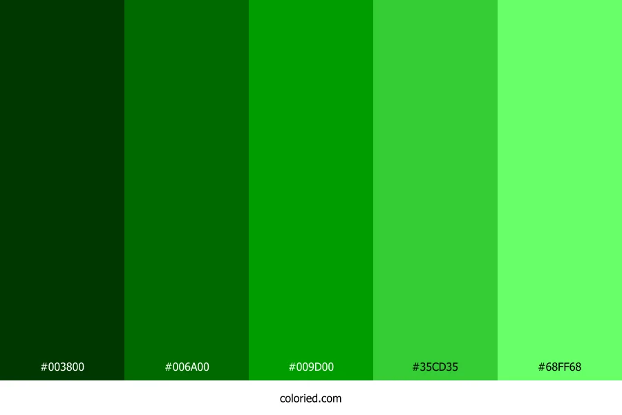 | #35CD35 | 53, 205, 53 | 120, 60%, 51% | 74%, 0%, 74%, 20% | oklch(0.743 0.226 143) | |