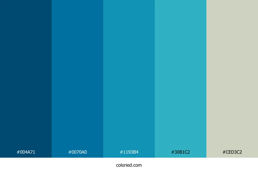 | #1193B4 | 17, 147, 180 | 192, 83%, 39% | 91%, 18%, 0%, 29% | oklch(0.616 0.111 222) | |