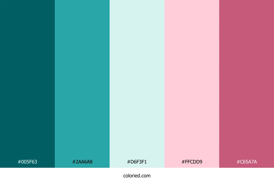 ![]() | #005F63 | 0, 95, 99 | 182, 100%, 19% | 100%, 4%, 0%, 61% | oklch(0.441 0.075 200) |