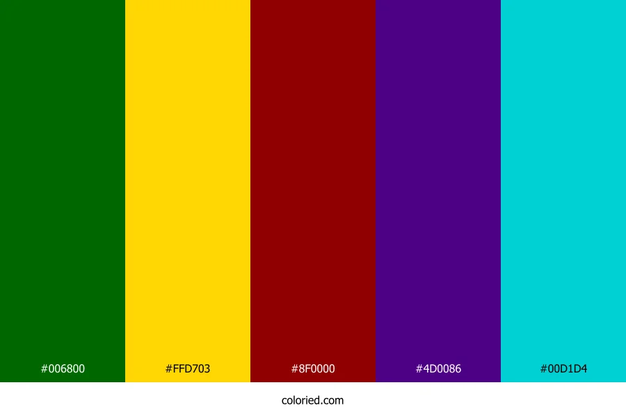 ![]() | #006800 | 0, 104, 0 | 120, 100%, 20% | 100%, 0%, 100%, 59% | oklch(0.448 0.153 143) |