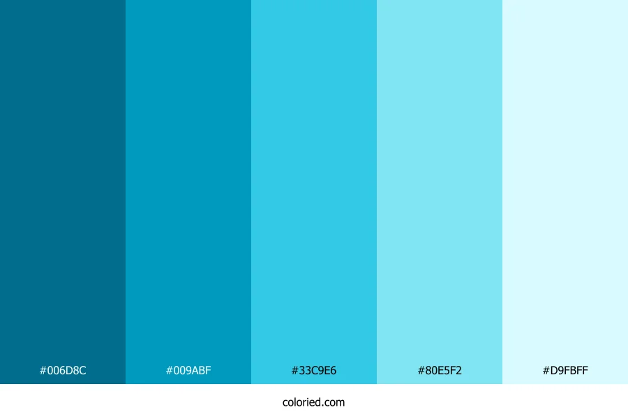 | #80E5F2 | 128, 229, 242 | 187, 81%, 73% | 47%, 5%, 0%, 5% | oklch(0.865 0.096 206) | |