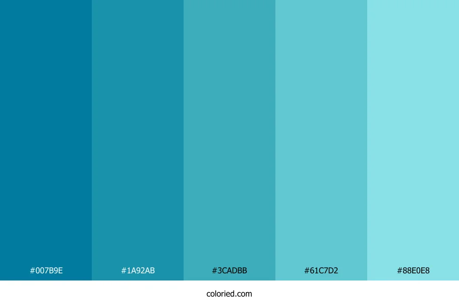 | #88E0E8 | 136, 224, 232 | 185, 68%, 72% | 41%, 3%, 0%, 9% | oklch(0.854 0.086 203) |