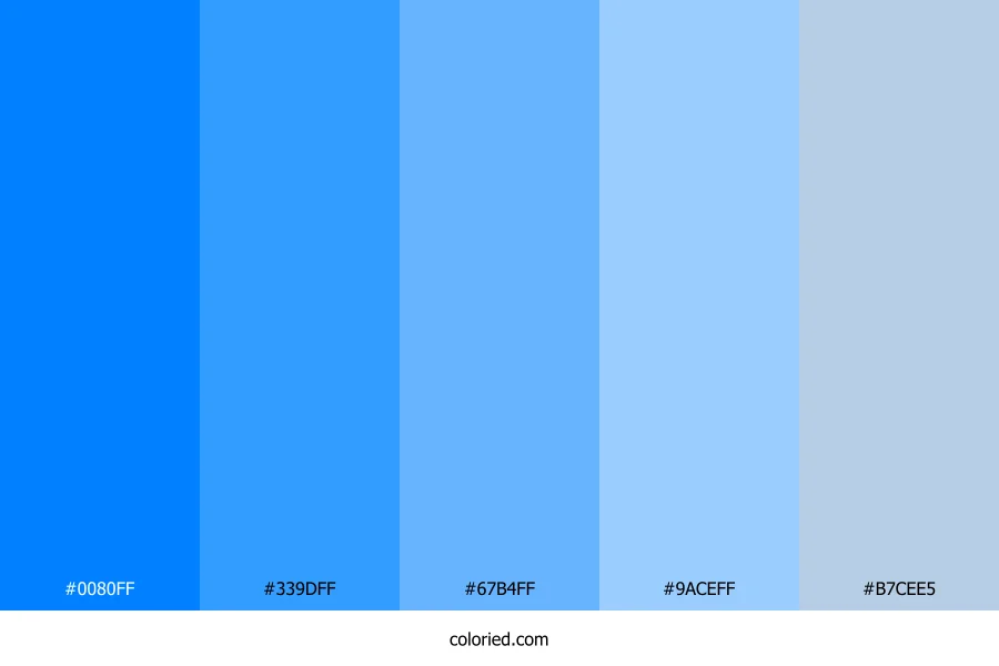![]() | #0080FF | 0, 128, 255 | 210, 100%, 50% | 100%, 50%, 0%, 0% | oklch(0.615 0.211 256) |