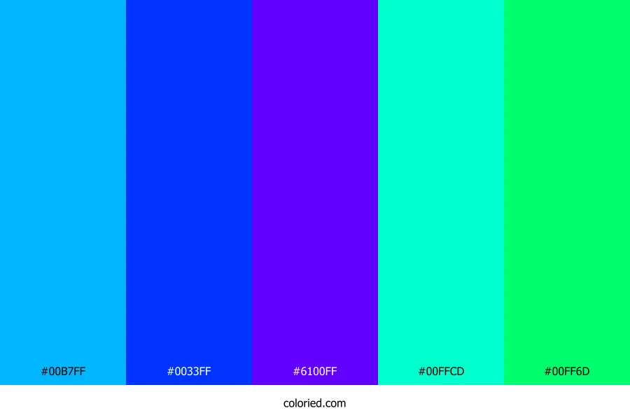 | #00FFCD | 0, 255, 205 | 168, 100%, 50% | 100%, 0%, 20%, 0% | oklch(0.891 0.173 172) | |