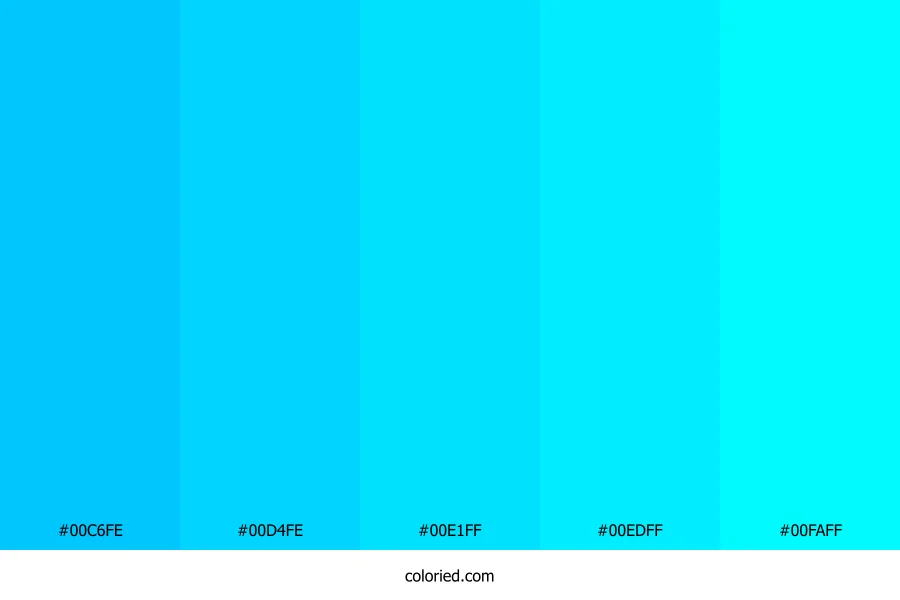 | #00FAFF | 0, 250, 255 | 181, 100%, 50% | 100%, 2%, 0%, 0% | oklch(0.894 0.152 197) |