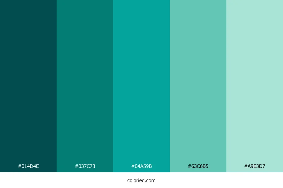 | #037C73 | 3, 124, 115 | 176, 95%, 25% | 98%, 0%, 7%, 51% | oklch(0.528 0.092 186) | |