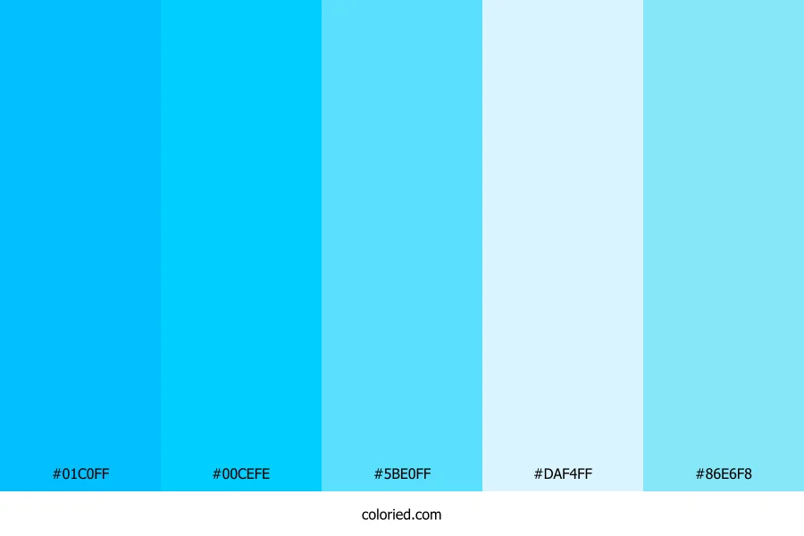 ![]() | #01C0FF | 1, 192, 255 | 195, 100%, 50% | 100%, 25%, 0%, 0% | oklch(0.758 0.153 231) |