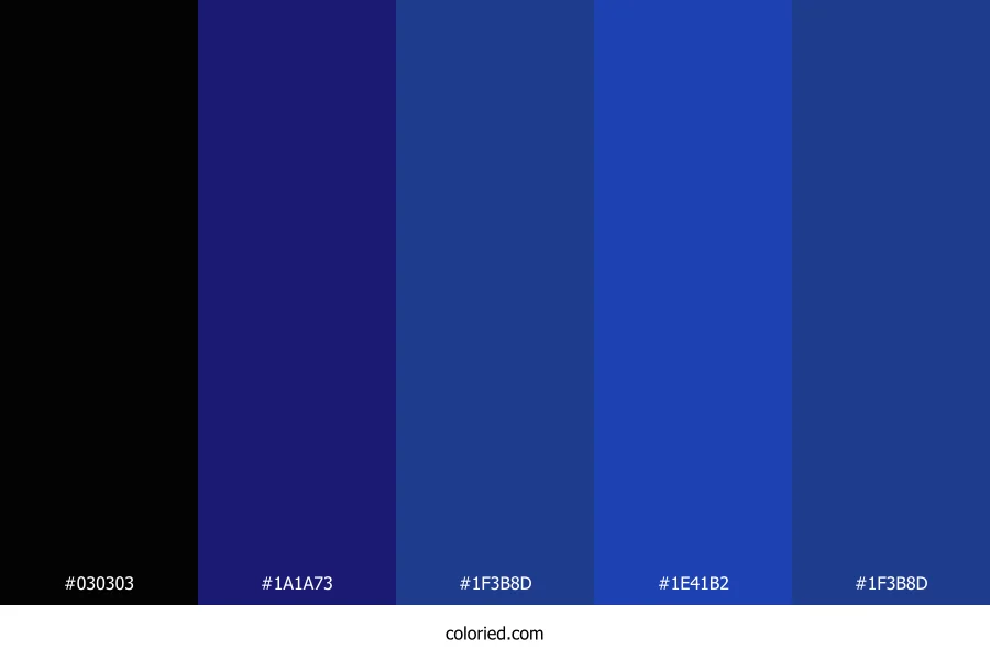| #1F3B8D | 31, 59, 141 | 225, 64%, 34% | 78%, 58%, 0%, 45% | oklch(0.384 0.140 266) | |