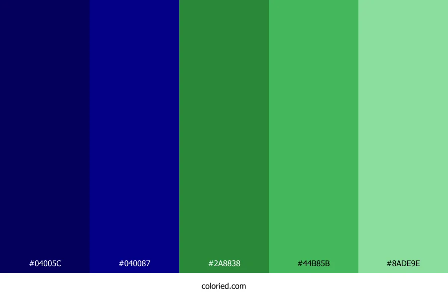 | #040087 | 4, 0, 135 | 242, 100%, 26% | 97%, 100%, 0%, 47% | oklch(0.283 0.194 265) | |