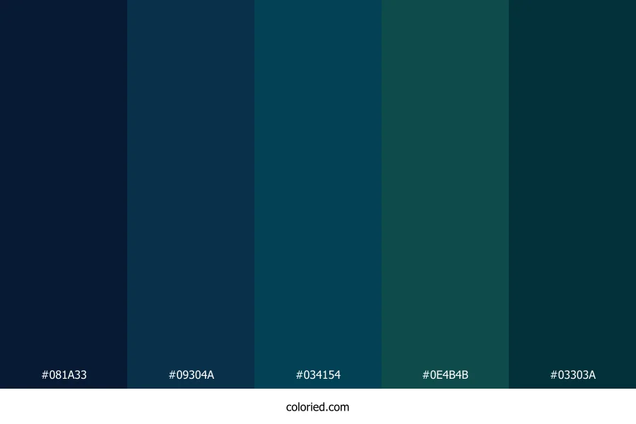 | #034154 | 3, 65, 84 | 194, 93%, 17% | 96%, 23%, 0%, 67% | oklch(0.350 0.065 226) | |