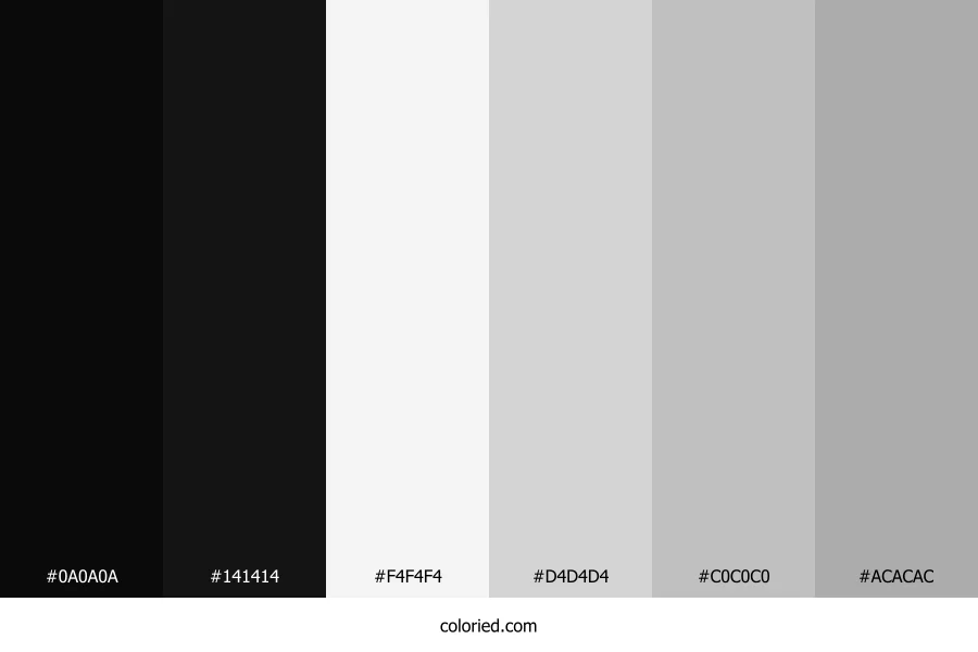 ![]() | #0A0A0A | 10, 10, 10 | 0, 0%, 4% | 0%, 0%, 0%, 96% | oklch(0.145 0.000 263) |