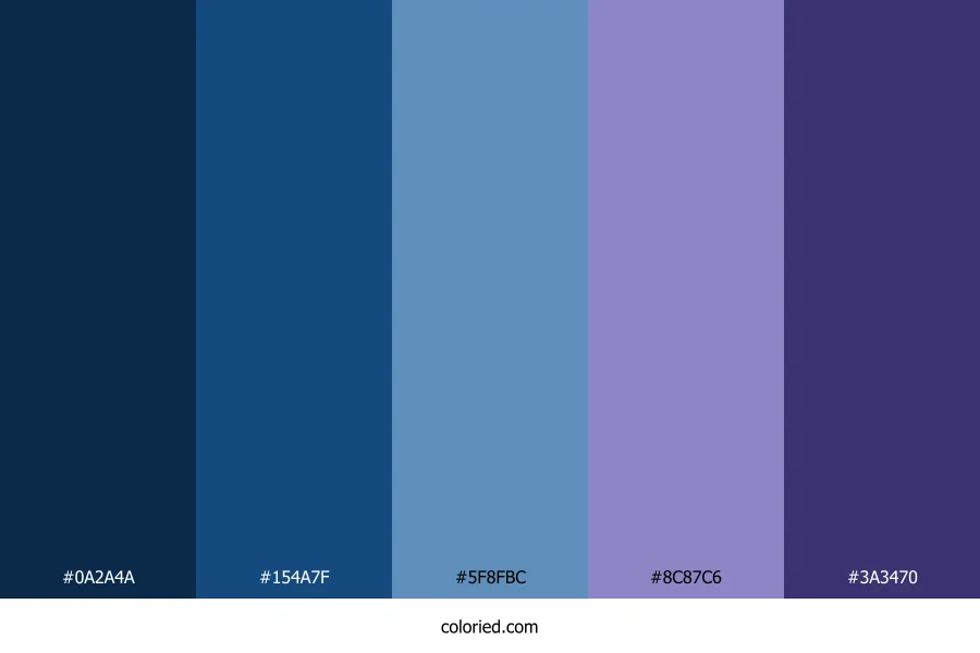 | #154A7F | 21, 74, 127 | 210, 72%, 29% | 83%, 42%, 0%, 50% | oklch(0.404 0.104 252) | |