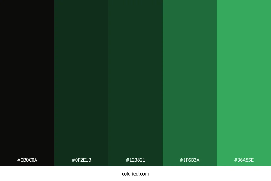 | #0F2E1B | 15, 46, 27 | 143, 51%, 12% | 67%, 0%, 41%, 82% | oklch(0.272 0.051 154) | |