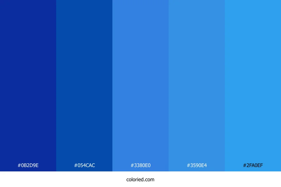 ![]() | #0B2D9E | 11, 45, 158 | 226, 87%, 33% | 93%, 72%, 0%, 38% | oklch(0.367 0.185 265) |