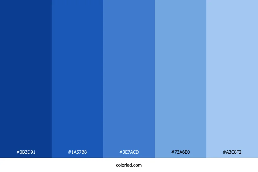 ![]() | #0B3D91 | 11, 61, 145 | 218, 86%, 31% | 92%, 58%, 0%, 43% | oklch(0.386 0.148 261) |