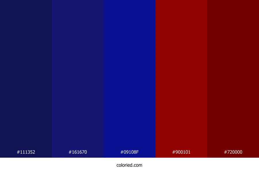 | #09108F | 9, 16, 143 | 237, 88%, 30% | 94%, 89%, 0%, 44% | oklch(0.309 0.193 266) | |