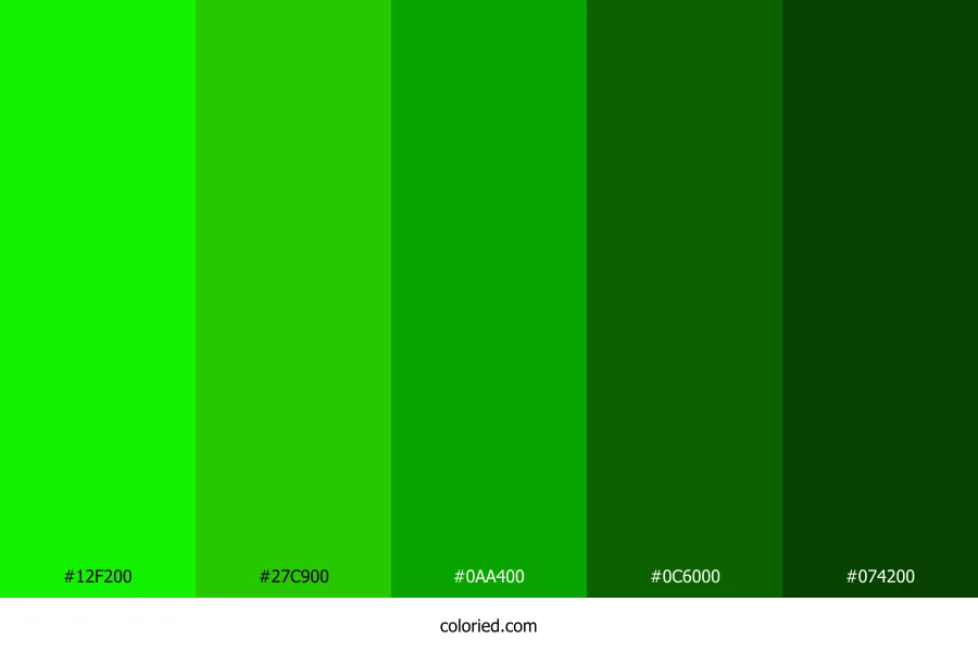 ![]() | #12F200 | 18, 242, 0 | 116, 100%, 47% | 93%, 0%, 100%, 5% | oklch(0.834 0.282 142) |