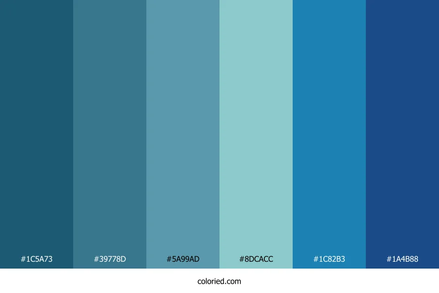 ![]() | #1C5A73 | 28, 90, 115 | 197, 61%, 28% | 76%, 22%, 0%, 55% | oklch(0.440 0.074 229) |