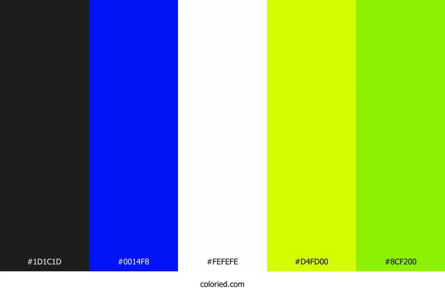 | #D4FD00 | 212, 253, 0 | 70, 100%, 50% | 16%, 0%, 100%, 1% | oklch(0.932 0.223 121) | |