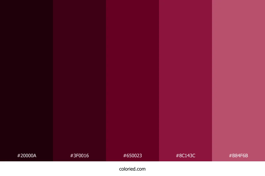 | #650023 | 101, 0, 35 | 339, 100%, 20% | 0%, 100%, 65%, 60% | oklch(0.324 0.129 11) | |
