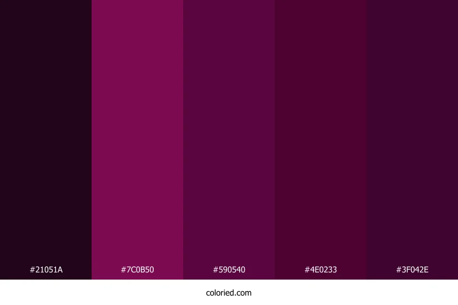 | #3F042E | 63, 4, 46 | 317, 88%, 13% | 0%, 94%, 27%, 75% | oklch(0.251 0.100 343) |