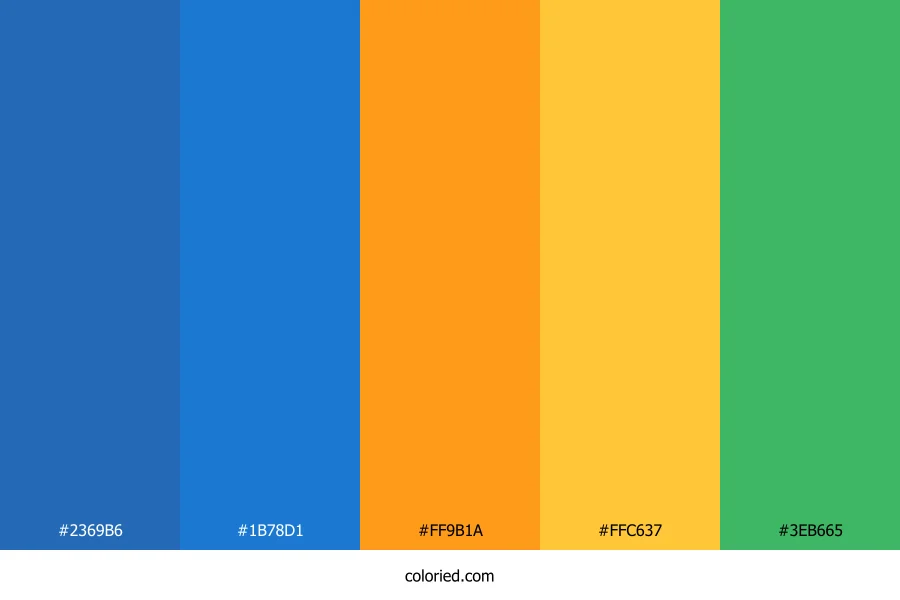 ![]() | #2369B6 | 35, 105, 182 | 211, 68%, 43% | 81%, 42%, 0%, 29% | oklch(0.519 0.140 254) |