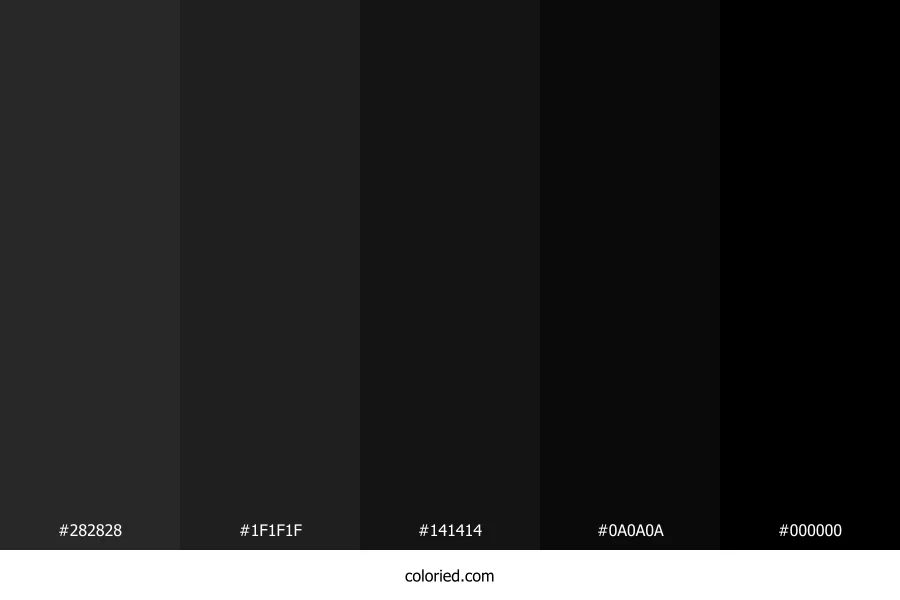 | #141414 | 20, 20, 20 | 0, 0%, 8% | 0%, 0%, 0%, 92% | oklch(0.191 0.000 263) | |