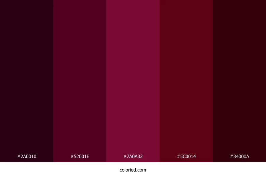 | #34000A | 52, 0, 10 | 348, 100%, 10% | 0%, 100%, 81%, 80% | oklch(0.206 0.083 16) |