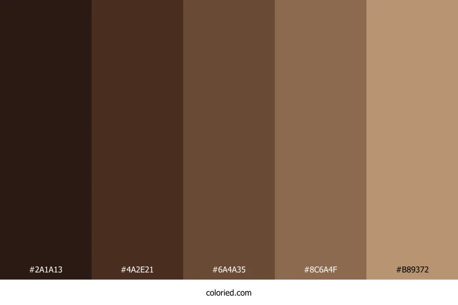![]() | #2A1A13 | 42, 26, 19 | 18, 38%, 12% | 0%, 38%, 55%, 84% | oklch(0.236 0.029 44) |