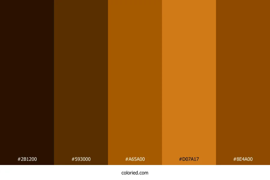 ![]() | #2B1200 | 43, 18, 0 | 25, 100%, 8% | 0%, 58%, 100%, 83% | oklch(0.216 0.052 57) |