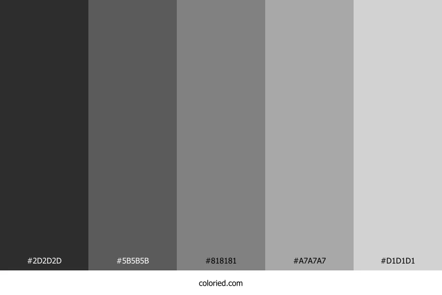 ![]() | #2D2D2D | 45, 45, 45 | 0, 0%, 18% | 0%, 0%, 0%, 82% | oklch(0.297 0.000 263) |