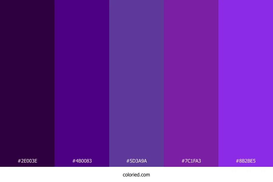 | #8B2BE5 | 139, 43, 229 | 271, 78%, 53% | 39%, 81%, 0%, 10% | oklch(0.537 0.253 301) |