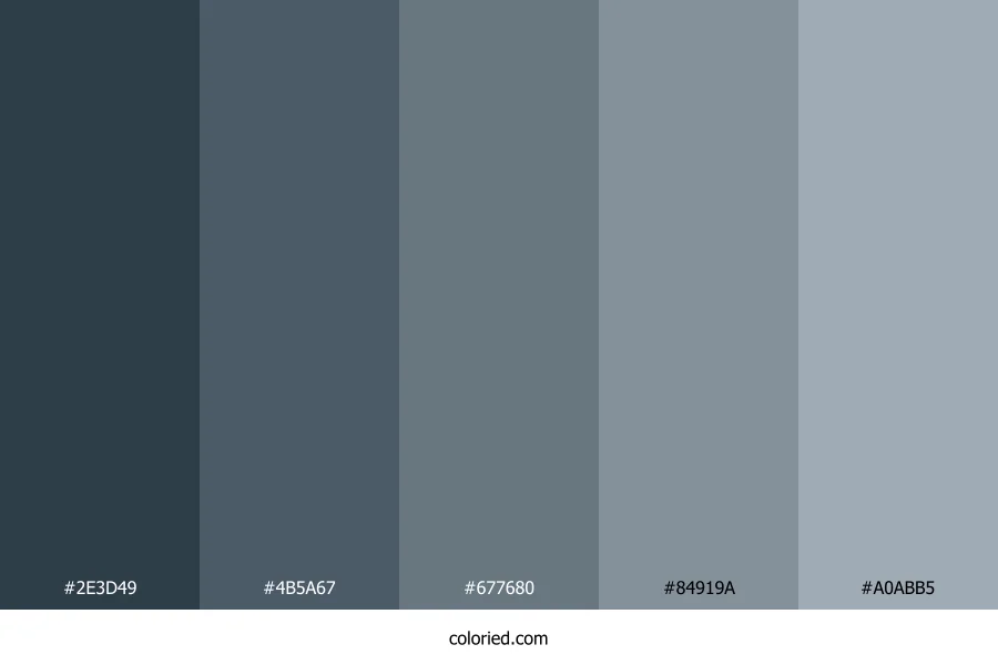 ![]() | #2E3D49 | 46, 61, 73 | 207, 23%, 23% | 37%, 16%, 0%, 71% | oklch(0.352 0.029 243) |