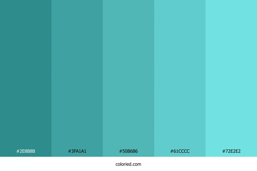 ![]() | #2E8B8B | 46, 139, 139 | 180, 50%, 36% | 67%, 0%, 0%, 45% | oklch(0.584 0.085 195) |