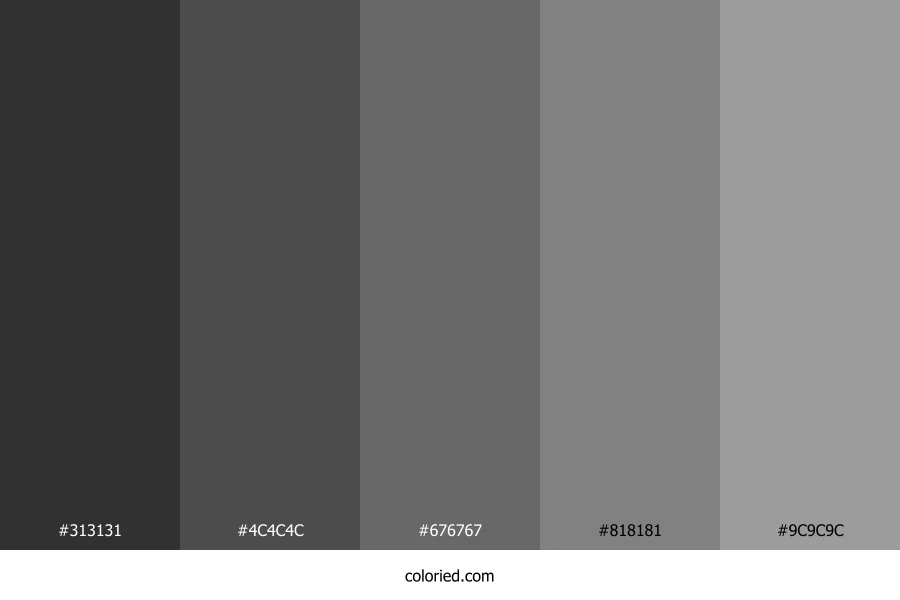 ![]() | #313131 | 49, 49, 49 | 0, 0%, 19% | 0%, 0%, 0%, 81% | oklch(0.313 0.000 263) |