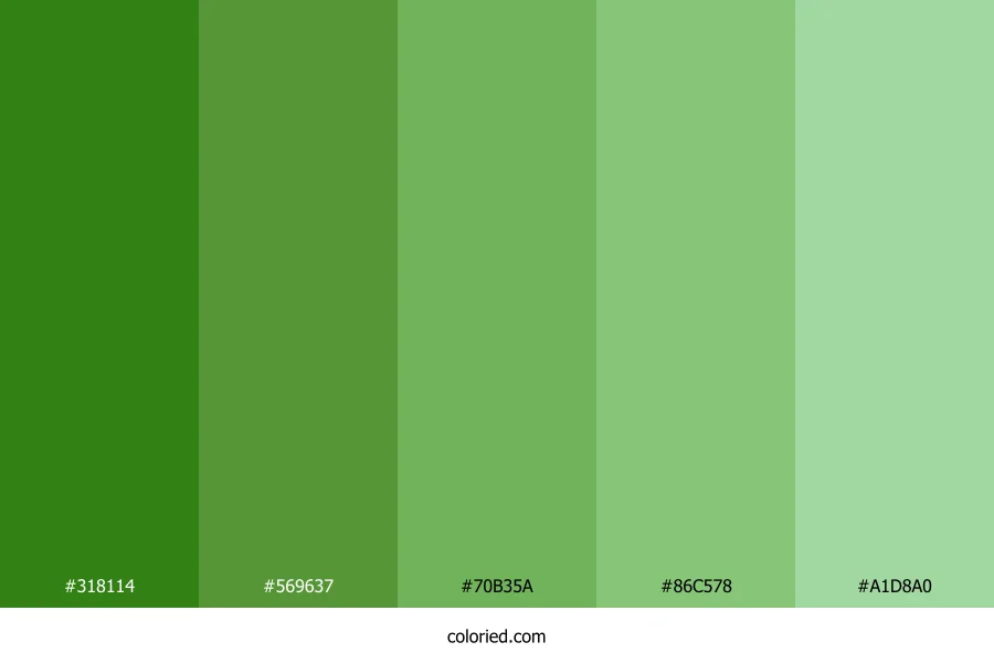![]() | #318114 | 49, 129, 20 | 104, 73%, 29% | 62%, 0%, 84%, 49% | oklch(0.533 0.159 139) |