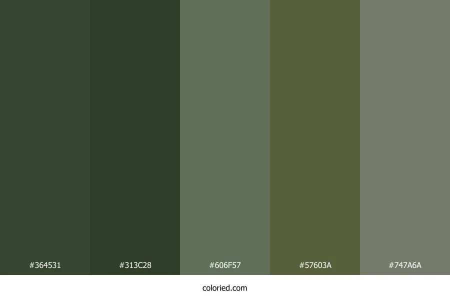 ![]() | #364531 | 54, 69, 49 | 105, 17%, 23% | 22%, 0%, 29%, 73% | oklch(0.371 0.039 138) |