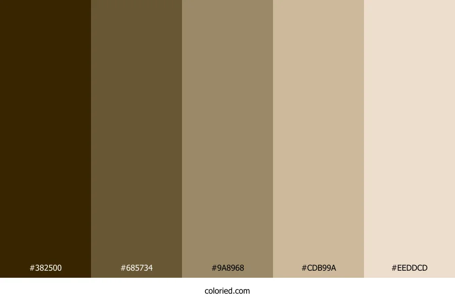 | #9A8968 | 154, 137, 104 | 40, 20%, 51% | 0%, 11%, 32%, 40% | oklch(0.637 0.051 84) | |