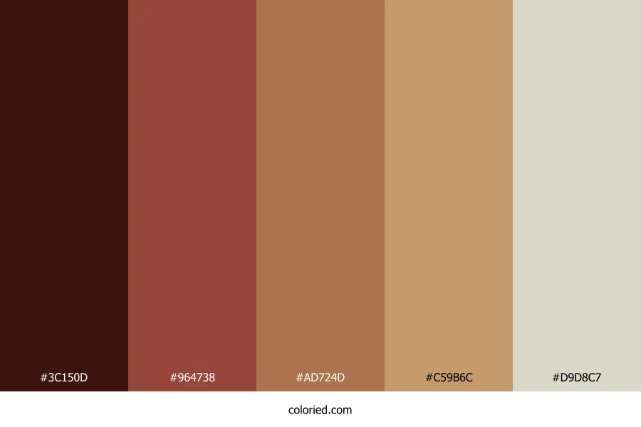 ![]() | #3C150D | 60, 21, 13 | 10, 64%, 14% | 0%, 65%, 78%, 76% | oklch(0.255 0.064 33) |
