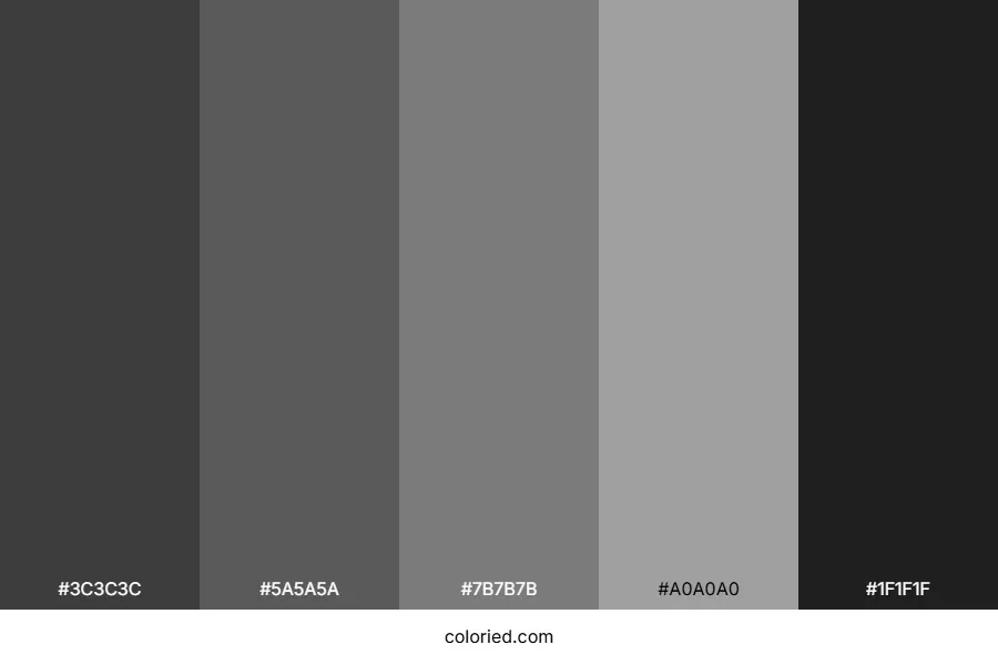 ![]() | #3C3C3C | 60, 60, 60 | 0, 0%, 24% | 0%, 0%, 0%, 76% | oklch(0.356 0.000 263) |