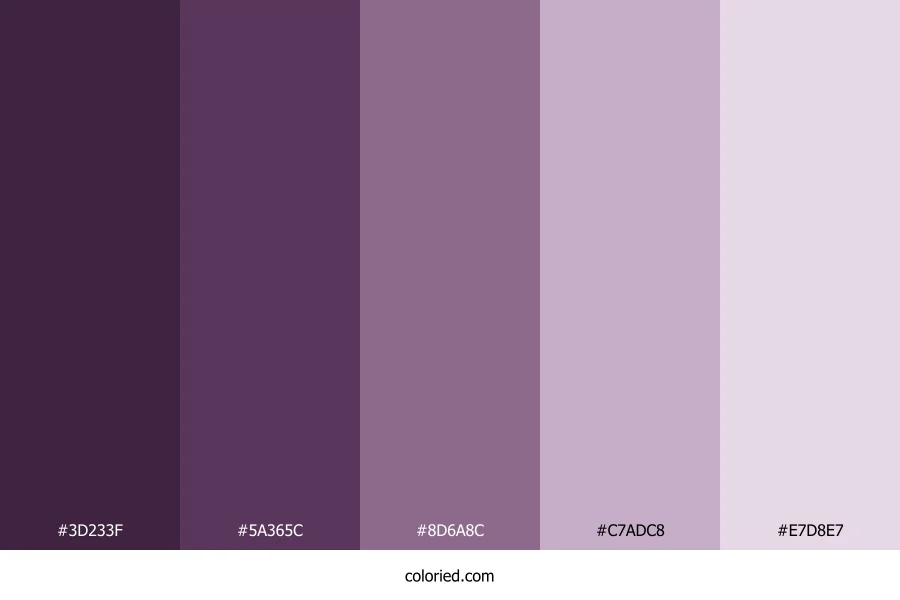 ![]() | #3D233F | 61, 35, 63 | 296, 29%, 19% | 3%, 44%, 0%, 75% | oklch(0.302 0.060 324) |
