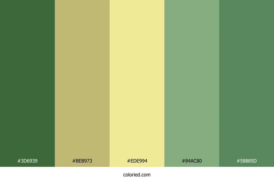 | #BEB973 | 190, 185, 115 | 56, 37%, 60% | 0%, 3%, 39%, 25% | oklch(0.774 0.091 105) | |