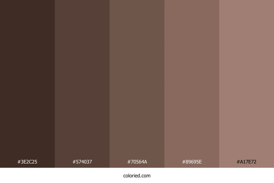| #A17E72 | 161, 126, 114 | 15, 20%, 54% | 0%, 22%, 29%, 37% | oklch(0.623 0.047 40) |