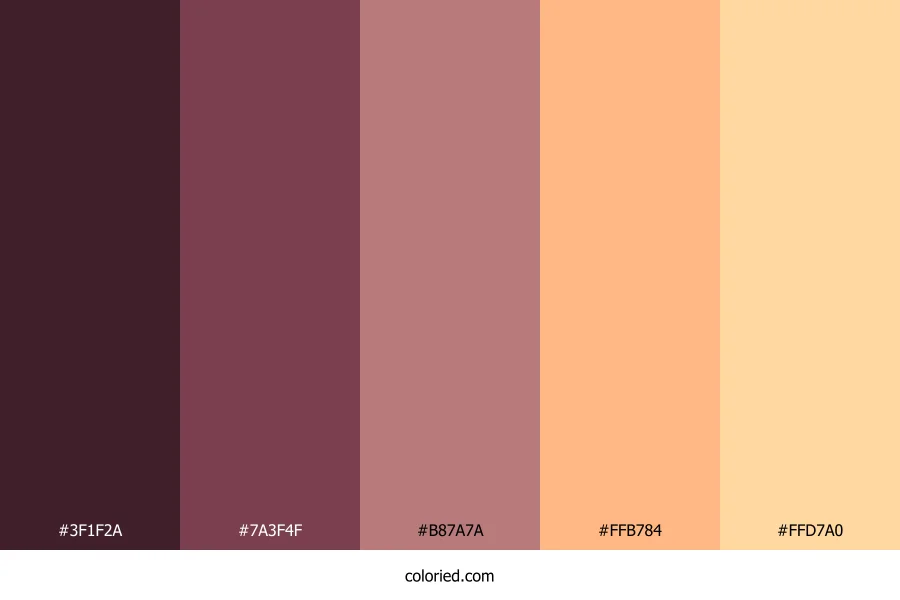 ![]() | #3F1F2A | 63, 31, 42 | 339, 34%, 18% | 0%, 51%, 33%, 75% | oklch(0.287 0.052 359) |