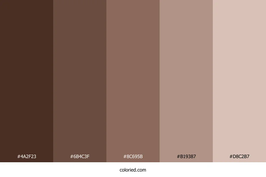 | #B19387 | 177, 147, 135 | 17, 21%, 61% | 0%, 17%, 24%, 31% | oklch(0.687 0.040 43) | |
