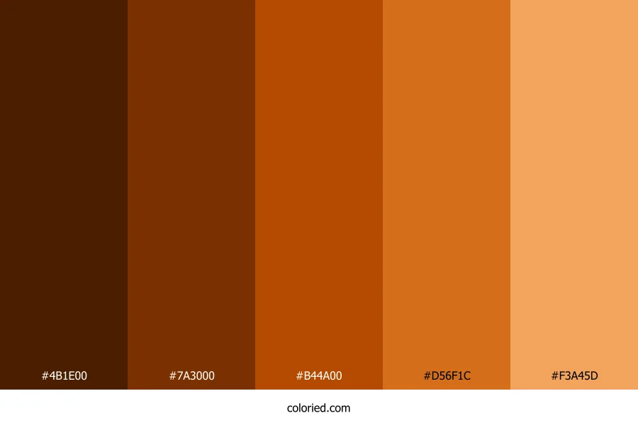 | #B44A00 | 180, 74, 0 | 25, 100%, 35% | 0%, 59%, 100%, 29% | oklch(0.542 0.154 45) | |